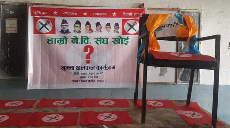 काठमाडौंको घण्टाघरस्थित त्रिचन्द्र क्याम्पसका वरिष्ठ नेता रामचन्द्र पौडेल निकटका नेविसंघका विद्यार्थीले शनिबार ‘हाम्रो नेविसंघ खोइ ?’ भन्दै खुल्ला छलफल चलाएका हुन् ।