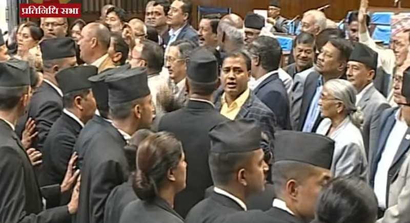 दुवै दलका सांसदहरूले उभिएर विरोध जनाइरहेका बेला सभामुखले बोल्नका लागि समय नदिइकनै बैठकको कार्यसूची अगाडि बढाएका हुन् ।