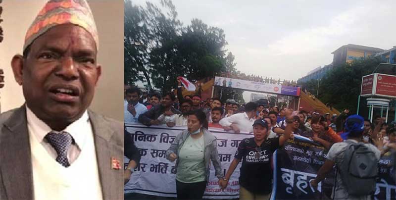 राजीनामा माग गर्दै सडकमा आवाज उठेपछि मन्त्री पण्डितलाई तनाब बढाइदिएको छ । समावेशी सिद्धान्तका आधारमा विज्ञापन निकाल्नुपर्नेमा त्यसो नगरेपछि मन्त्री पण्डितको चौतर्फी आलोचना हुँदै आएको छ ।