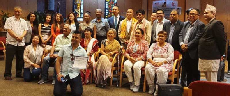 प्रमुख अतिथिले क्विन्स काउन्टीकका डेमोक्र्या्टिक लिडर एन्थोनि डि एन्ड्र्युज लाई आफैले लेखेको पुस्तक उपहार दिंदै सबै कलाकारहरुलाई पुरस्कार वितरण र सम्मान गरेका थिए ।