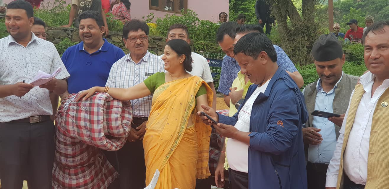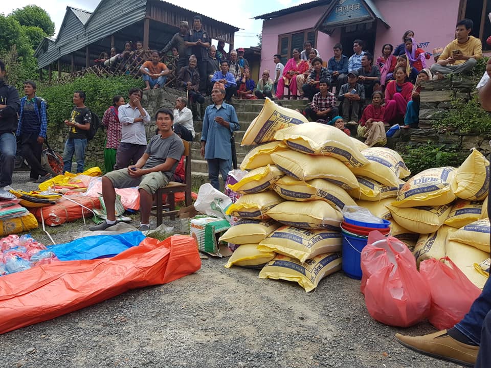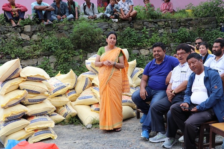 नेतृ उपाध्यायले पीडित परिवारलाई एक–एक बोरा चामल, त्रिपाल, दाल, नुन, तेल, सिरक, डस्ना, लत्ताकपडा, भाँडाकुडालगायतका सामाग्रीहरू प्रदान गरिएकी हुन् ।