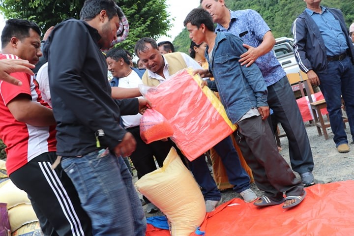 नेपाली कांग्रेस ईन्द्रसरोबर गाउँपालिका संयोजक जवानसिंह वाईबाको अध्यक्षतामा राहत वितरण कार्यक्रम गरिएको थियो ।