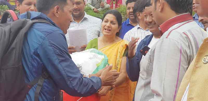 ईन्द्रसरोबर गाउँपालिका वडा नम्बर ५ का पूर्ण र आंशिक क्षति भएका १ सय ६१ घरपरिवार बाढी पहिरो पीडितहरूलाई नेपाली कांग्रेसकी केन्द्रीय सदस्य महालक्ष्मी उपाध्याय ‘डिना’ले राहत वितरण गरेकी हुन् ।