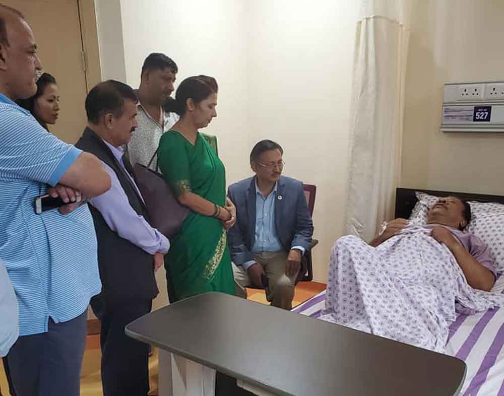 उनीहरूलाई भेट्न नेपाली कांग्रेसकी नेतृ डा.डिला संग्रौला पन्त, महेन्द्र यादव, जन्मजय तिमिल्सीना सहित नेताहरूपनि अस्पताल पुगेका थिए ।