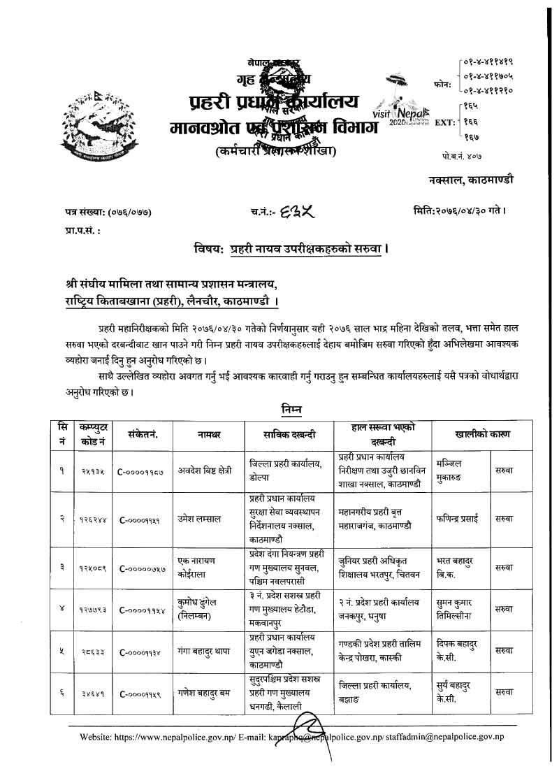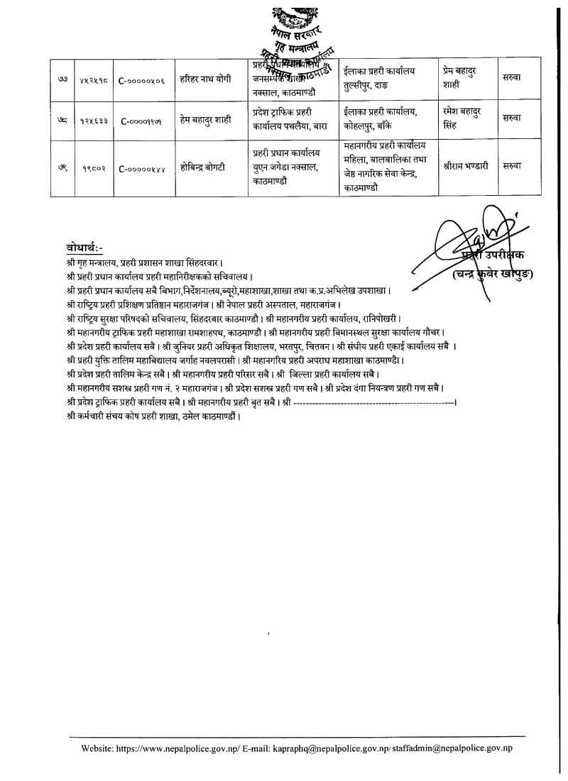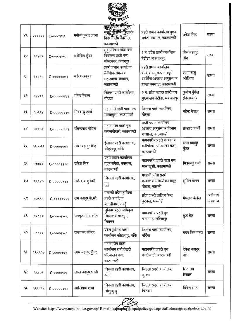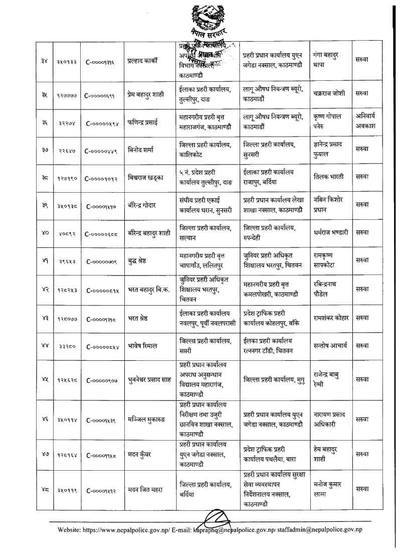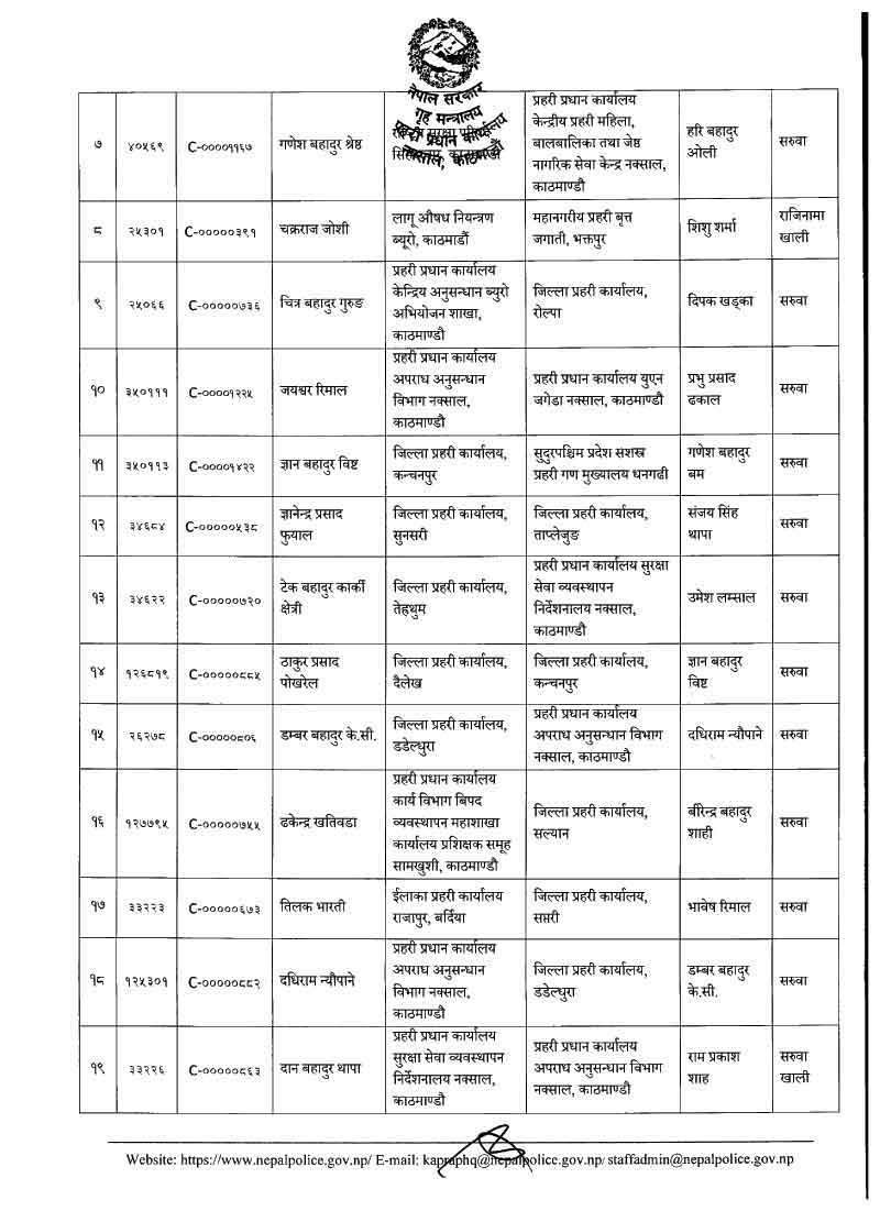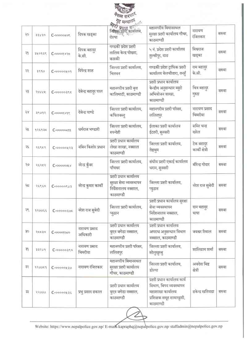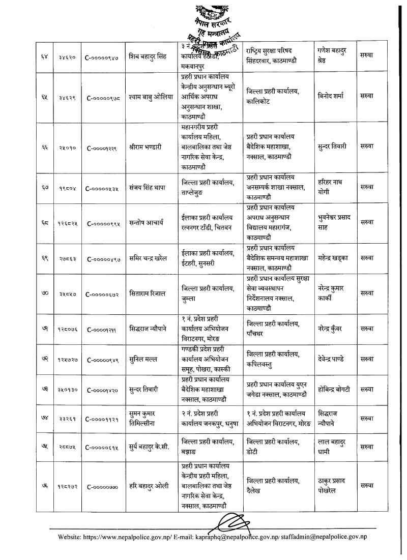 नेपाल प्रहरीका ७९ डीएसपीहरूको सरुवा (नाम)