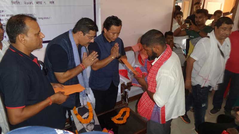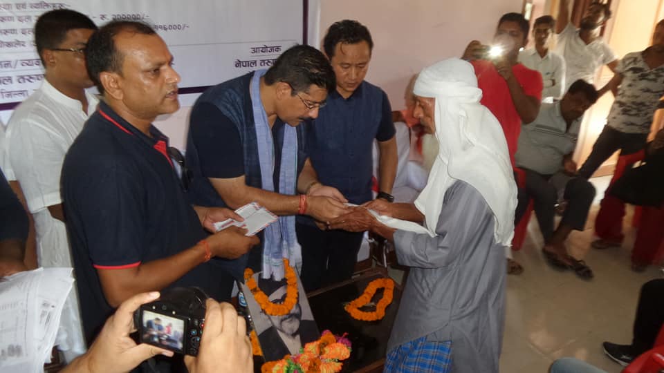 उनले भने, ‘हामीले त्यस बेला घोषणा गरेअनुसार बारा र पर्सा जिल्लामा हावा हुरीबाट मृत्यु भएका ३१ जनाको परिवारका सदस्यलाई जनही दश–दश हजारका दरले आर्थिक सहयोग प्रदान गर्ने भनेका थियौँ । त्यो बाचा आज पूरा गरेका छौँ ।’