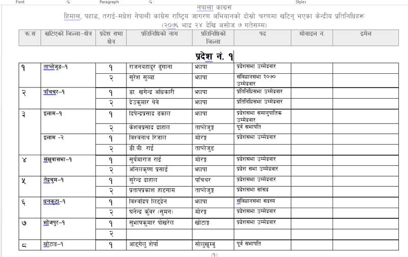 नेपाली कांग्रेसद्वारा आइतबार बिहान जारी विज्ञप्तिअनुसार प्रदेशअन्तर्गतका सबै निर्वाचन क्षेत्रहरूमा प्रतिनिधि खटाइएको हो । केही जिल्लामा क्रमशः प्रतिनिधि खटाइनेछ ।