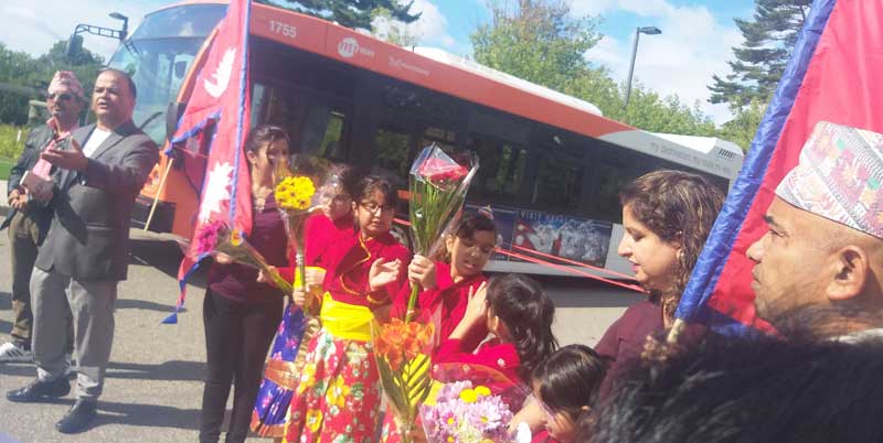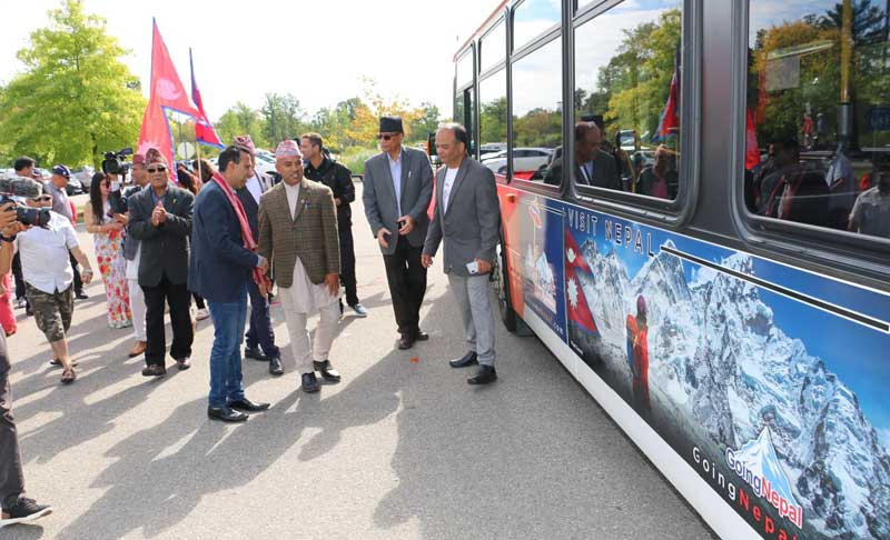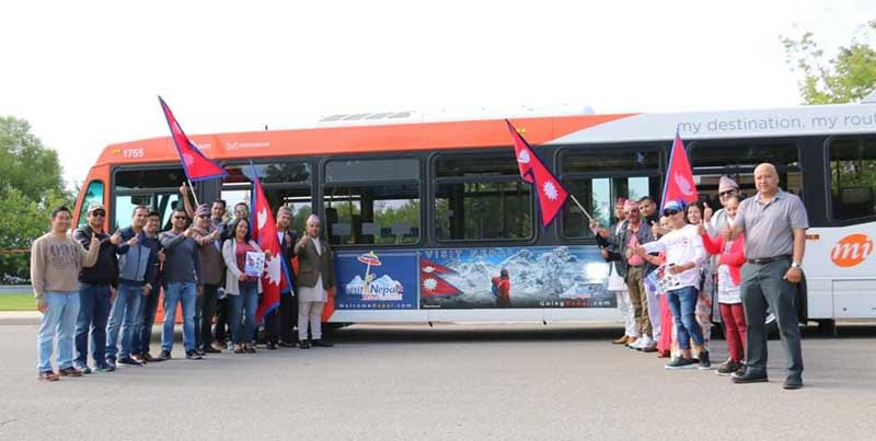शनिबार क्यानाडाको मिसिसागा रिभरवड पार्कमा नेपाल झल्काउने तस्विर अंकित सिटी बस ल्याई पञ्चकन्याका साथ कार्यक्रमको उद्घाटन गरिएको थियो ।