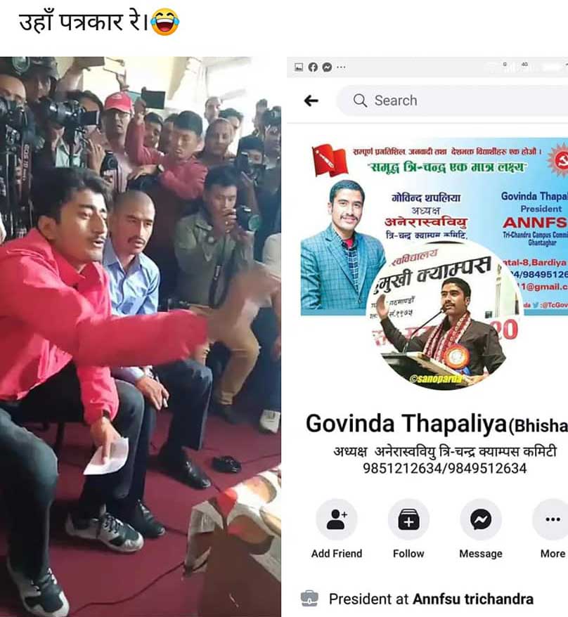 त्यसपछि शाहीले ‘यो विद्यार्थीका लागि होइन, पत्रकार सम्मेलन हो’ भनेका थिए । लगत्तै अरिँगालहरूले आक्रमण गरेको भिडियोमा देखिएको छ ।