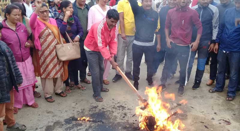 देउवाको जिल्लामा जल्यो ओली–दाहालको पुत्ला