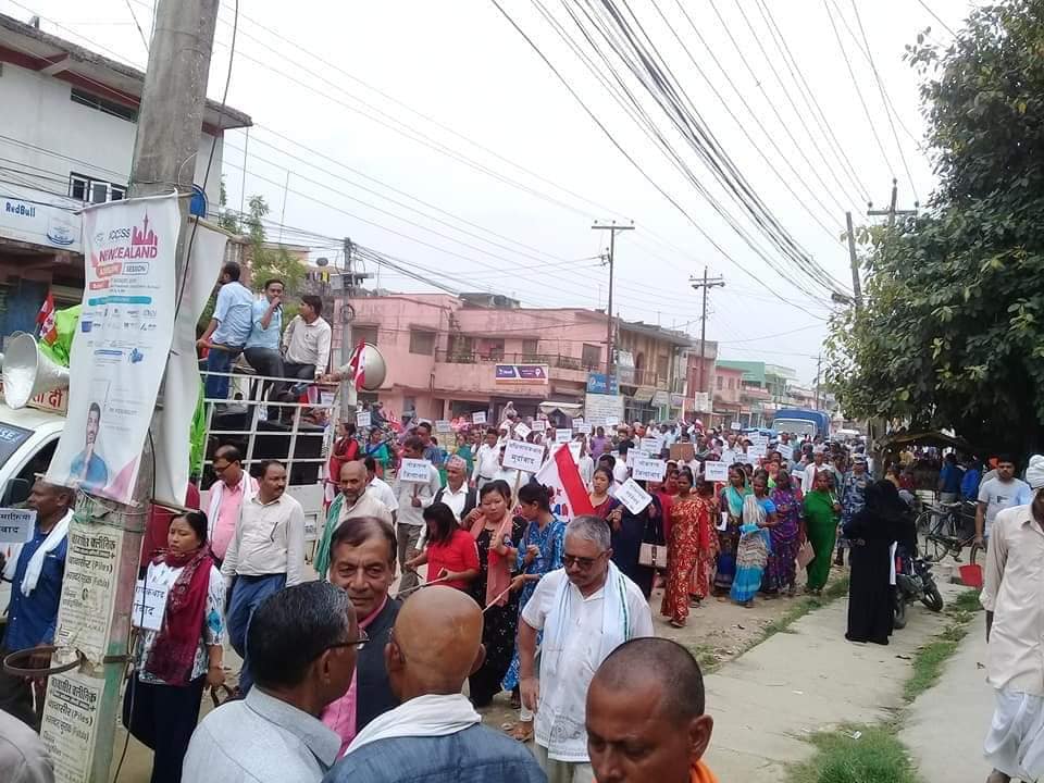 प्रदर्शनपछि आयोजित कार्यक्रममा देवकरण जयसवाल, मेयर भरत थापा, मेयर नरेन्द्र गुप्ता, महासमिति सदस्य लालबहादुर गुरुङले धारणा राखेका थिए । कार्यक्रमको सभापतित्व अर्जुनकुमार पोखरेल र सञ्चालन सचिव बिक्रम यादवले गरेका थिए ।