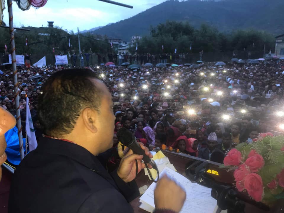नेपाली कांग्रेसका युवा नेता थापा जुम्लामा आउने भएपछि शुभेच्छुक र पार्टीका नेता तथा कार्यकर्ताहरूको भीड लागेको थियो । कार्यक्रमस्थल खचाखच भरिएको थियो ।