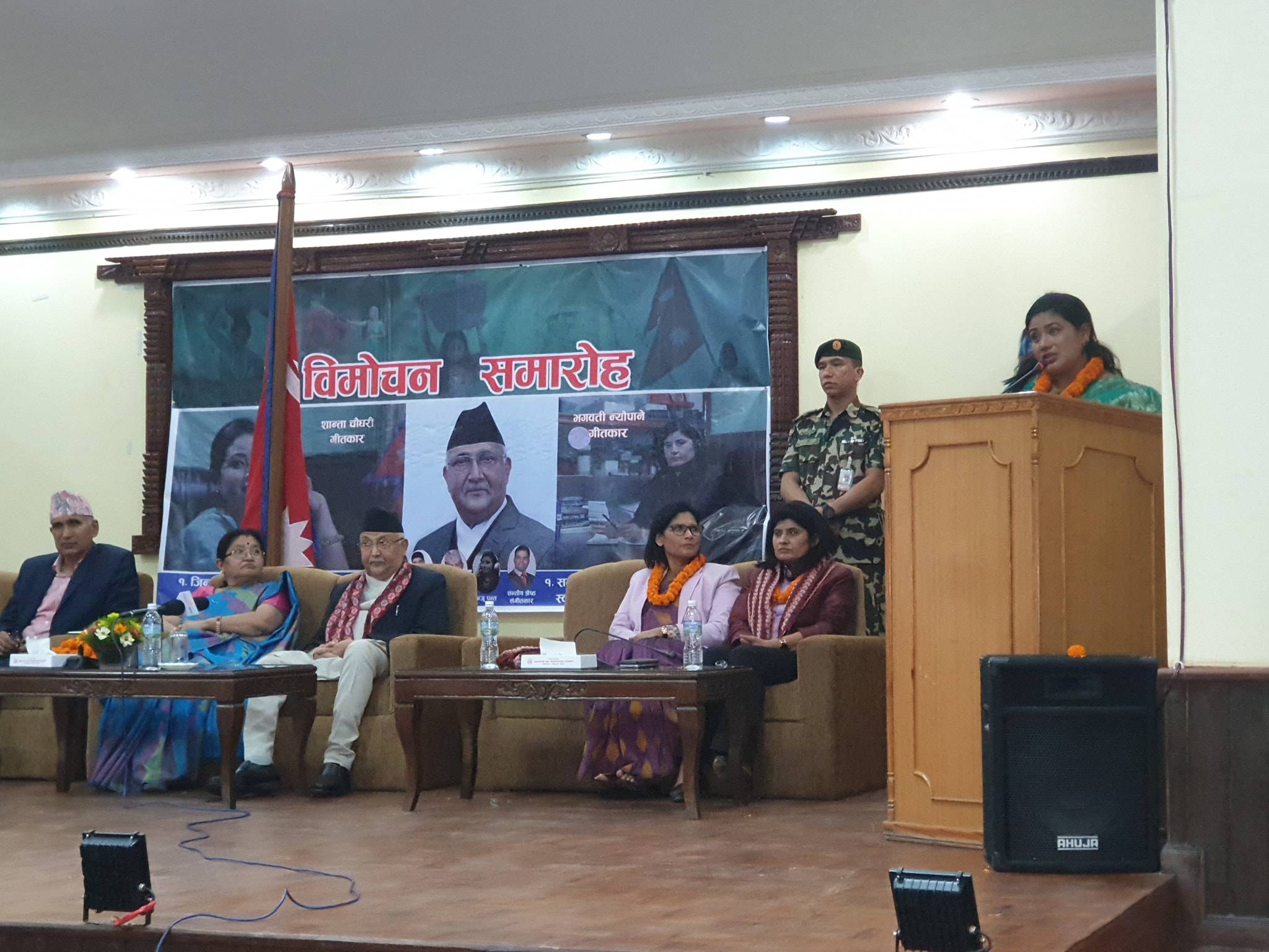 काठमाडौं । सत्तारुढ नेपाल कम्युनिस्ट पार्टी (नेकपा)को संसदीय दलकी सचेतक शान्ता चौधरीले सत्ता र शक्तिको दुरुपयोग गरेर प्रधानमन्त्रीको सरकारी निवास बालुवाटारभित्रै आफ्नो व्यक्तिगत लगानी रहेको दुई वटा गीतको लोकार्पण गरेकी छिन् ।