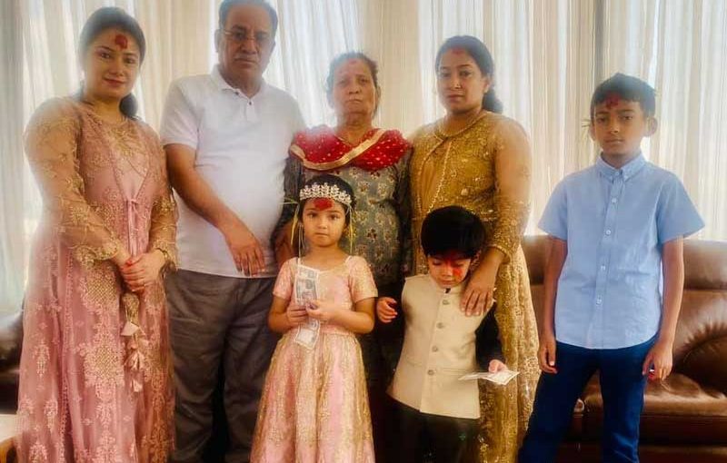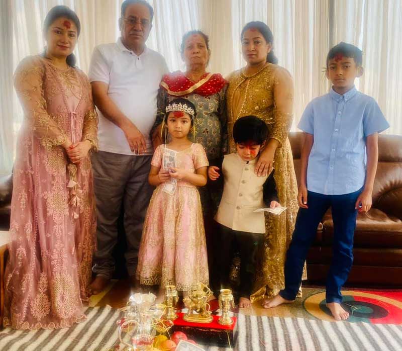 पत्नी, ज्वाइँ, छोरी र नातीनतिनाहरुलाई दाहालले दशैँको टीका लगाइदिएका हुन् ।