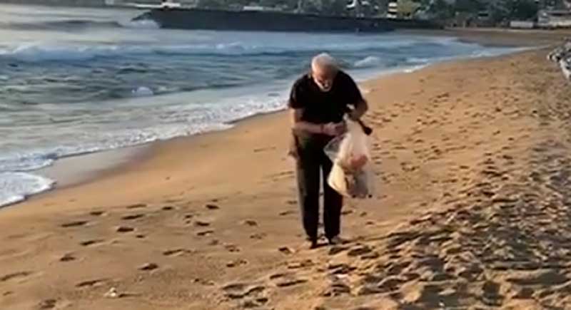 आफू बसेको ताज फिसरम्यान्स कोभ रिसोर्टनजिकैको समुद्री किनारामा गएर मोदीले फोहोर उठाएकाे भिडियाेमा देखिएकाे छ ।