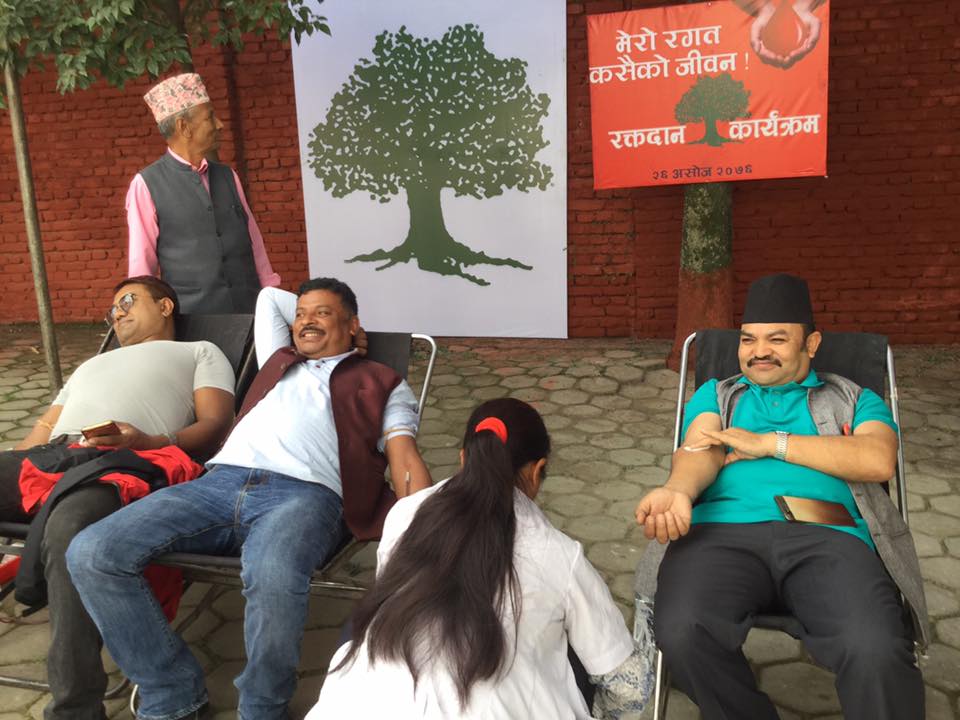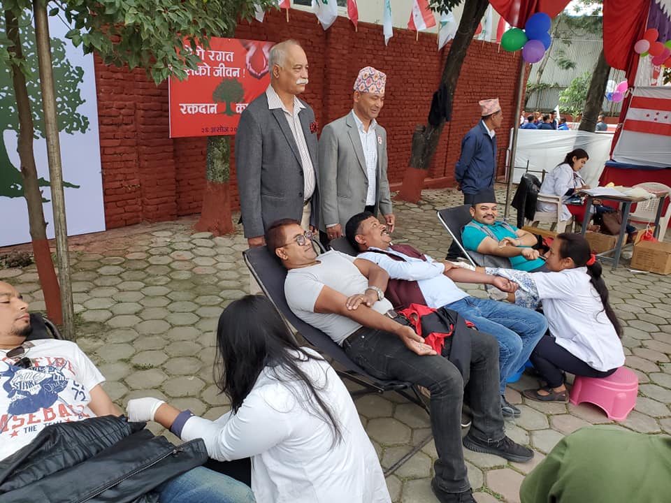 नेपाली कांग्रेसले यस पटक रक्तदानको कार्यक्रमलाई चियापानमा समावेश गरेको हो । ललितपुरको सानेपामा आइतबार आयोजित कार्यक्रममा नेपाली कांग्रेसका नेता तथा कार्यकर्ता र शुभेच्छुकहरूले रक्तदान गरेका थिए ।
