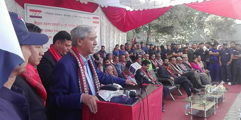 नेपाल तरुणको जन्म कठिन अवस्थामा भएको स्मरण गरेका नेपाली कांग्रेसका सभापति देउवाले तरुण दलले नै राष्ट्रियता र प्रजातन्त्रको रक्षा गर्न सक्ने बताए ।
