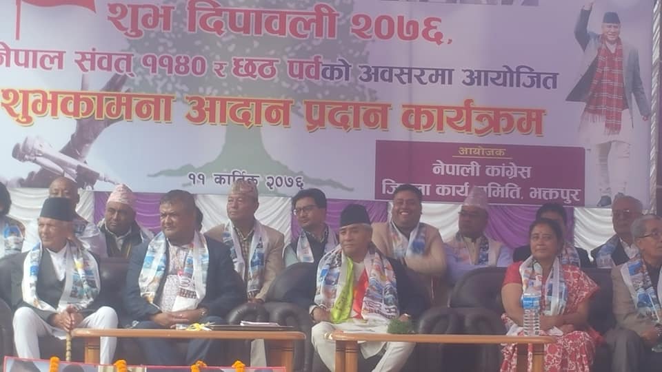 नेपाली कांग्रेस भक्तपुरले शुभ दीपावली २०७६, नेपाल संवत् ११४० नयाँ वर्ष (न्हुदँ) तथा छठको अवसरमा चियापान तथा शुभकामना आदानप्रदान कार्यक्रमको आयोजना गरेको हो ।