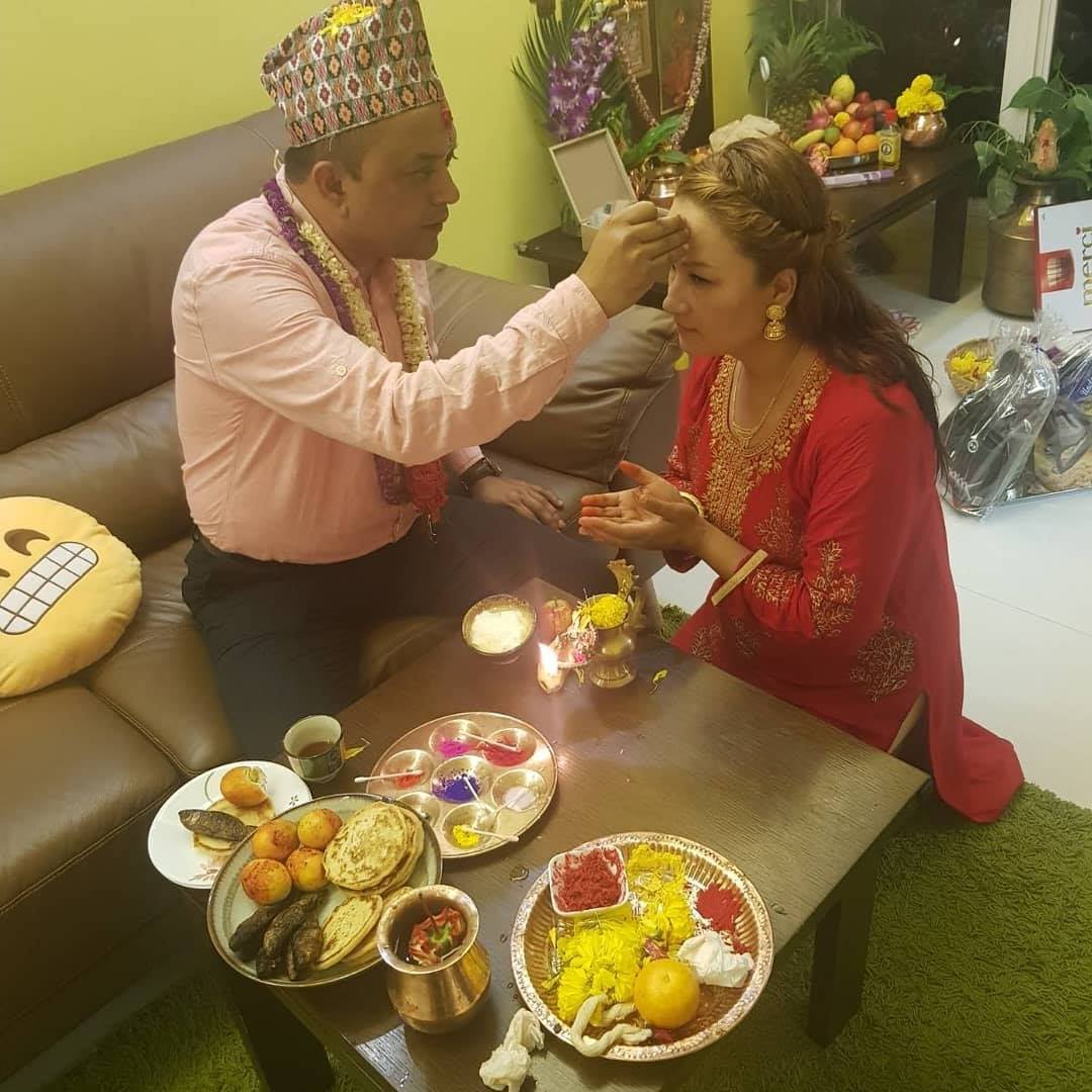 ‘कस्तो सुखद् संयोग । अध्ययनको लागि सिंगापुरमा आउँदा पनि भाइटीका छुटेन’, थापाले फेसबुकमा टीका लगाउँदै गरेको तस्वीर पोस्ट गर्दै लेखेका छन्, ‘यही बसोबास गरेर बसेकी बहिनी निर्मला नकर्मी चानसंग भाइटीका लगाइयो ।’