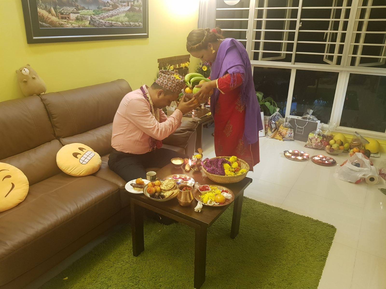 ‘कस्तो सुखद् संयोग । अध्ययनको लागि सिंगापुरमा आउँदा पनि भाइटीका छुटेन’, थापाले फेसबुकमा टीका लगाउँदै गरेको तस्वीर पोस्ट गर्दै लेखेका छन्, ‘यही बसोबास गरेर बसेकी बहिनी निर्मला नकर्मी चानसंग भाइटीका लगाइयो ।’