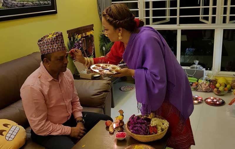 गगन थापाले सिंगापुरमा लगाए तिहारको टीका