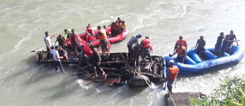 सुकुटेमा रहेका विभिन्न रिसोर्टबाट डुंगा मगाएर प्रहरी र स्थानीयले उद्धार गरिरहेका छन् । केही शव नदीले बगाएको छ । बसलाई क्रेनले तानेर नदी किनारमा ल्याइएको छ ।