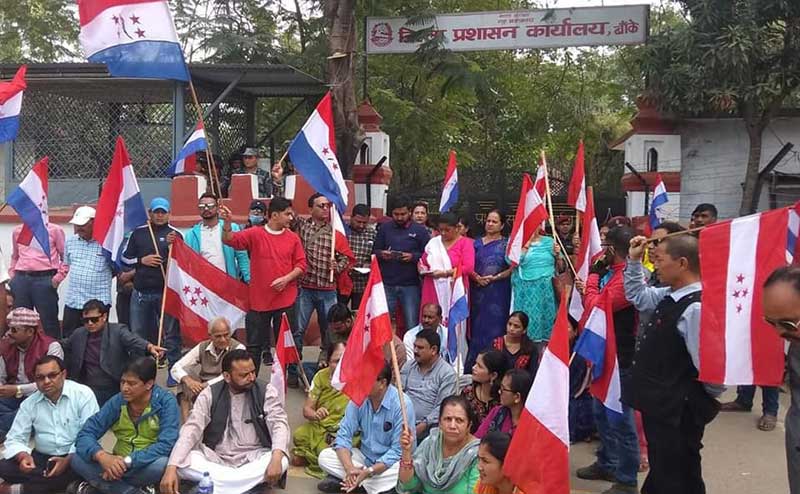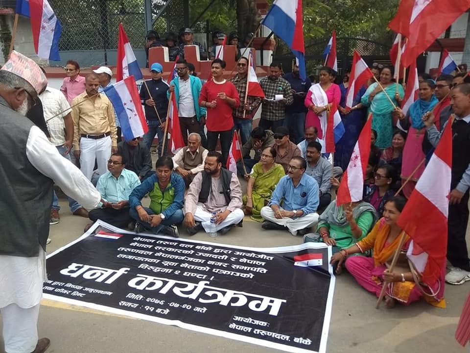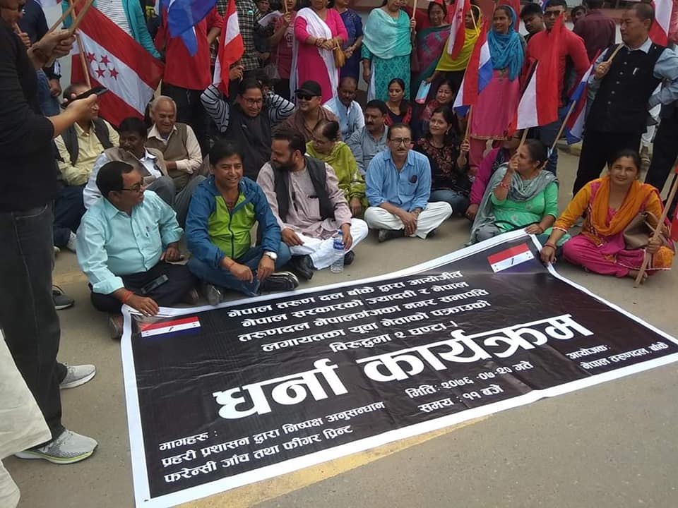 नेपालगञ्जस्थित जिल्ला प्रशासन कार्यालय बाँकेको मुख्य द्वारमा नेपाल तरुण दलका नेता तथा कार्यकर्ताले धर्ना दिएका हुन् ।