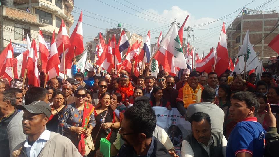 नेपाली कांग्रेस भक्तपुरका सभापति दुर्लभ थापाका अनुसार बिहीबार नारावाजी र जुलुससहित निर्वाचन कार्यालयमा पुगेर मनोनयन दर्ता गरिएको हो । थापाले नेपाली कांग्रेसले उपनिर्वाचन जित्ने दाबी गरे ।