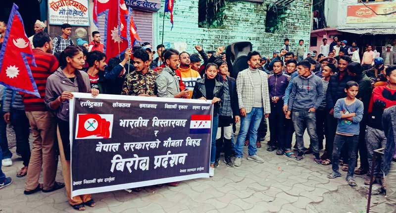 विरोध प्रदर्शन गर्दै सरकारको धारणा सार्वजनिक गर्न र भारत सरकारसंग कुटनीतिक पहल अघि बढाउन माग गरेको छ ।