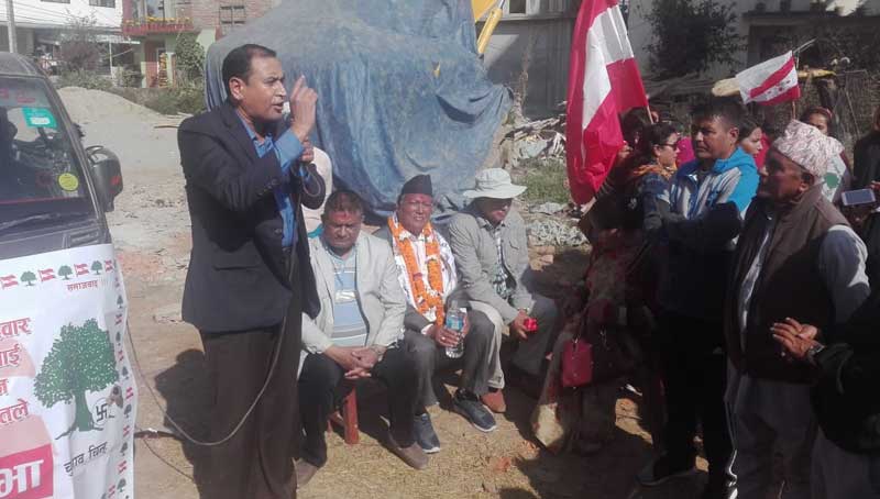 ‘दुई वर्षमा दुईतिहाइको सरकारले केही गर्न सकेन । भ्रष्टाचारमा डङडङती गन्हाउन थाल्यो’, उनले भने, ‘यो क्षेत्रमा कम्युनिस्टले जिते । तर, केही काम हुन सकेन । त्यसैले काम गर्नका लागि नेपाली कांग्रेसको रुख चिन्हमा भोट हाल्नुस् ।’