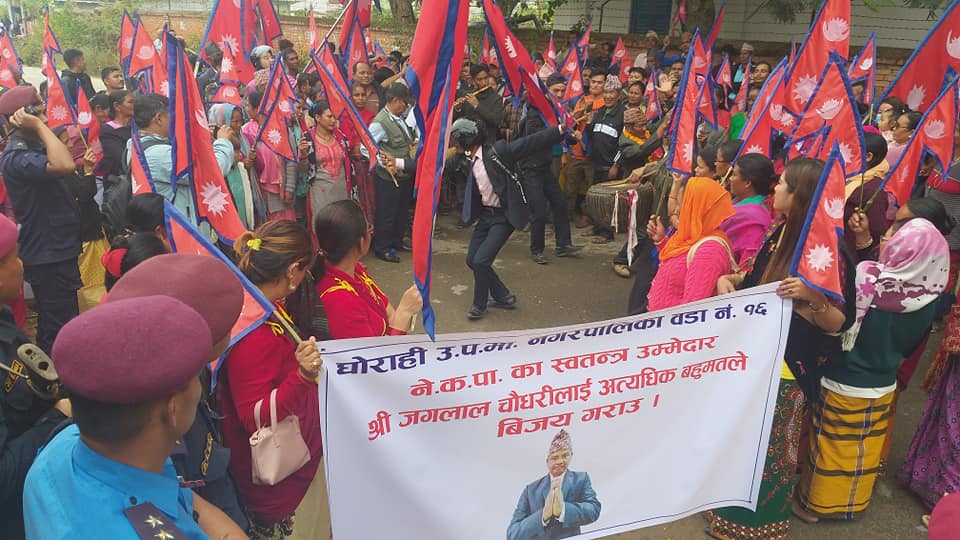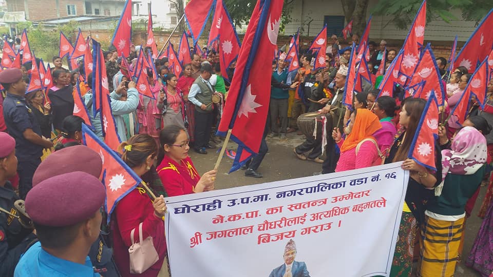 घोराही उपमहानगरपालिका वडा नम्बर १६ मा नेकपाले टिकट नदिएपछि नेकपाकै नेता जगलाल चौधरीले बागी उम्मेदवारी दिएका छन् । चौधरीले बुधबार दलबलसहित निर्वाचन कार्यालयमा पुगेर मनोनयन दर्ता गराएका छन् ।