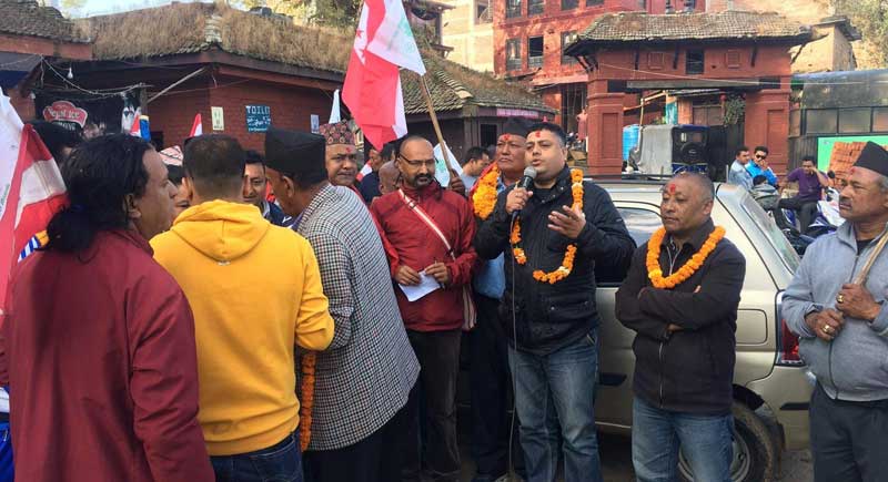 भक्तपुर । नेपाल तरुण दलका केन्द्रीय उपाध्यक्ष उत्तम चापागाइँले जनताले दिएको म्याण्डेट विपरित गएको दुईतिहाइको बलियो कम्युनिस्ट सरकारलाई सहि ठाउँमा ल्याउन उपनिर्वाचनमा नेपाली कांग्रेसका उम्मेदवारहरूलाई विजयी बनाउन अपील गरेका छन् ।