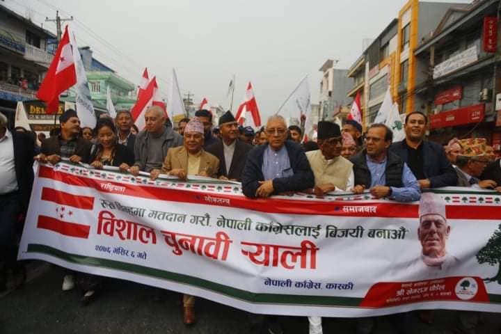 शुक्रबार अपरान्ह साढे चार बजे सभापति देउवा, वरिष्ठ नेता पौडेलसहितका नेताहरु पोखराको चिप्लेढुंगाबाट भएको चुनावी प्रदर्शनमा सहभागी भएका थिए ।