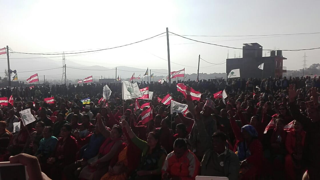 ‘सबैसँग भिजेको उम्मेदवार पाउनुभएको छ । राप्रपा संयुक्तको पनि साथ छ’, उनले भने, ‘कम्युनिस्ट पार्टीले जसरी आफ्ना नामका अगाडि विदेशी माक्र्सको, कहिले लेनिनको, कहिले माओसहित विदेशी नेताहरूको नाम लिएर हिँड्थे त्यसैगरी नेकपाले बाहिरी जिल्लाको नेता ल्याएर उम्मेदवार बनाएको छ ।’
