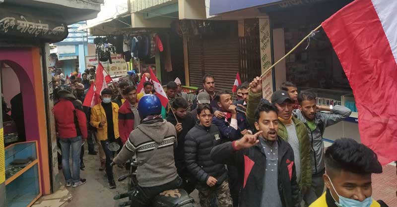 पार्टी कार्यालयबाट र्यालीसहित निस्केका उनीहरूले विरोध प्रदर्शन गर्दै सुतेको सरकारलाई ब्युँझेर भारतसंग कुटनीतिक पहल अघि बढाउन माग गरेका छन् ।