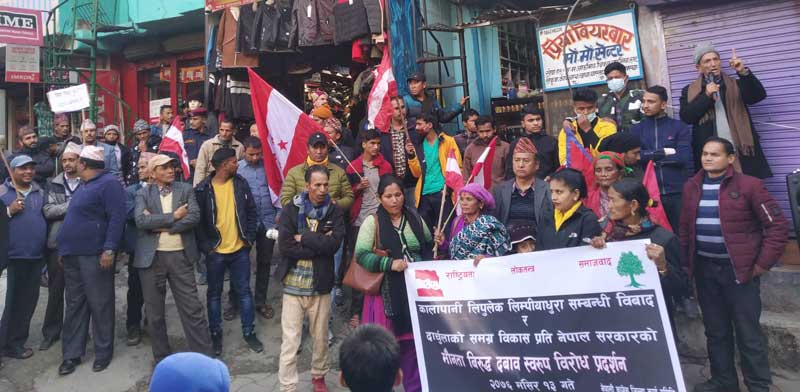 दार्चुला जिल्लाको कालापानी, लिपुलेक र लिम्पियाधुरा क्षेत्रलाई भारतले आफ्नो राजनीतिक नक्सामा समेटेको विरोधमा शुक्रबार नेपाली कांग्रेसले प्रदर्शन गरेको हो ।