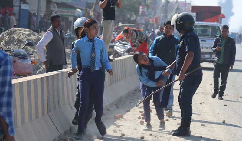 कोहलपुरमा स-साना विद्यार्थीकाे प्रदर्शनमाथि प्रहरी दमन