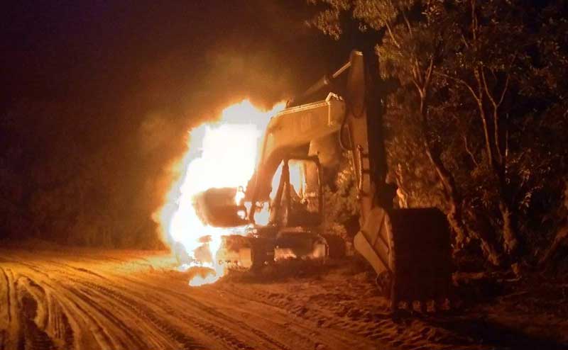 सगरमाथा कन्ट्रक्सन कम्पनीका सञ्चालक गोपाल श्रेष्ठले बुधबार मध्यराति करीव सवा १२ बजे क्याट कम्पनीको ‘थ्री ट्वान्टी डी टू’ एक्साभेटरमा अज्ञात समूहले आगो लगाएर पूर्ण रुपमा क्षति पुर्याएको जानकारी दिए । श्रेष्ठले एक्साभेटरमा कसले र किन आगो लगाएको हो आफूलाई कुनै जानकारी नरहेको बताए ।