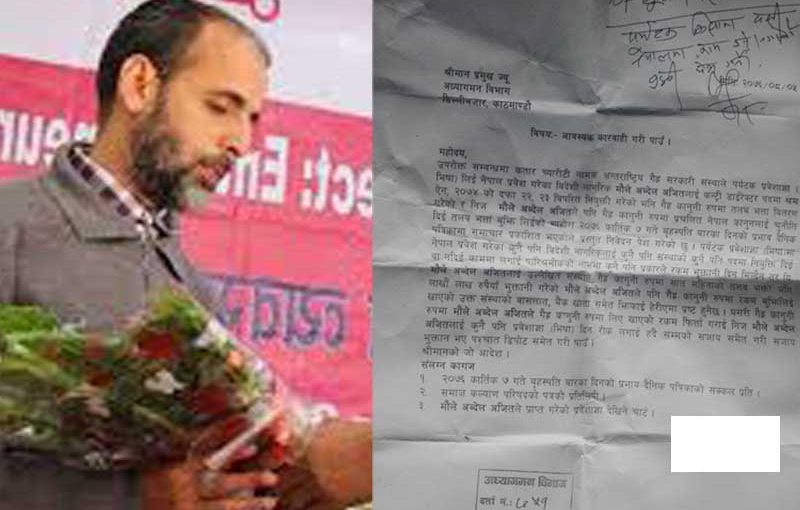 काठमाडौं । अन्तर्राष्ट्रिय गैह्र सरकारी संस्था (आईएनजिओ) कतार च्यारिटीका कन्ट्री डाइरेक्टर पदमा कार्यरत मौले अब्देल अजित गैह्र कानूनी रुपमा नेपाल बसेको भन्दै कारबाहीको माग राखेर अध्यागमन विभागमा उजुरी परेको छ ।