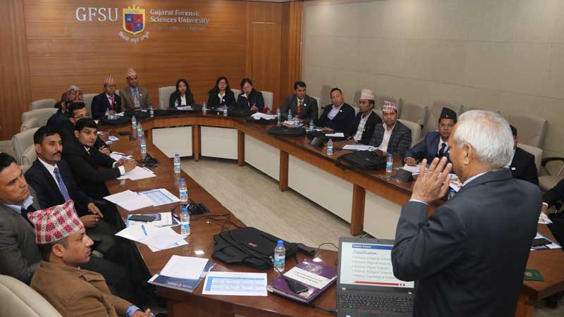 फरेन्सिक विज्ञान, अपराध अनुसन्धान, सुरक्षा तथा व्यवहार विज्ञान र अपराध विज्ञान क्षेत्रमा फरेन्सिक विज्ञलाई प्रशिक्षण दिनका लागि प्रख्यात गुजरातको गान्धीनगरस्थित गुजरात फरेन्सिक साइन्सेस युनिभरसिटीमा अधिकारीलाई प्रशिक्षण दिइएको छ ।
