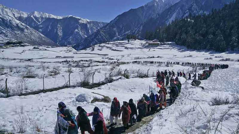 हुम्लामा कम्युनिस्ट सरकारविरुद्ध कांग्रेसको प्रदर्शन, हिउँमाथि सयौँ कार्यकर्ता