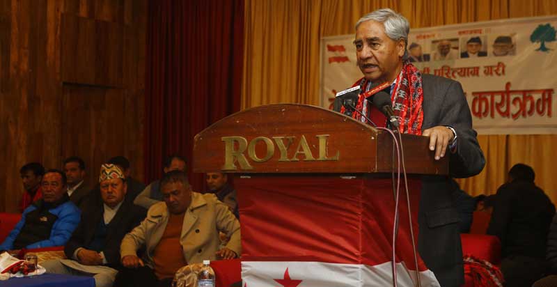 काठमाडौंको तीनकुनेस्थित रेयल व्याङ्केटमा नेकपा र राप्रपाका नेता तथा कार्यकर्ताहरूलाई देउवाले स्वागत गरेका हुन् ।