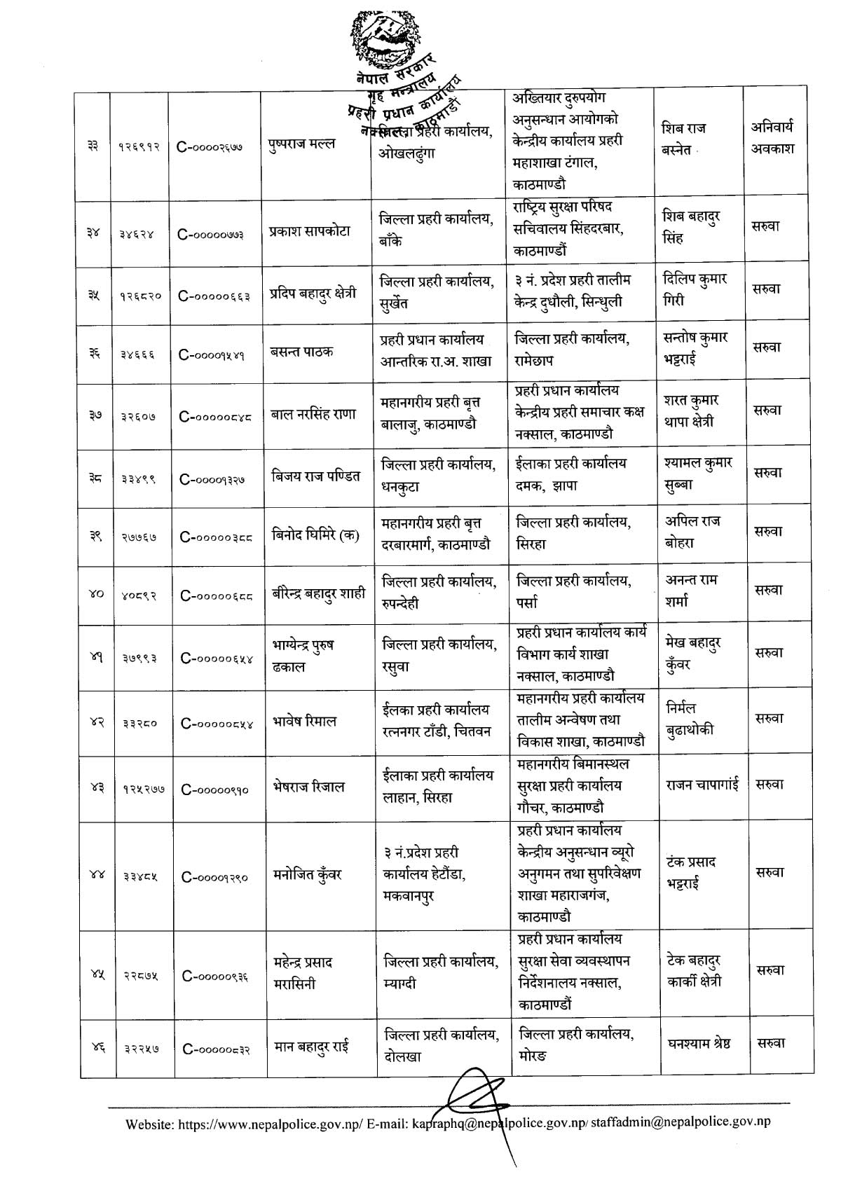 छ दर्जन डीएसपीहरूको सरुवा (नाम)