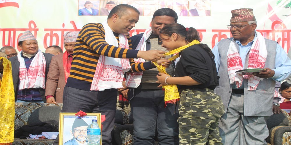 नवप्रवेशी कार्यकर्तालाई नेपाली कांग्रेसका युवा नेता थापाले खादा तथा अविर लगाएर प्रवेश गराएका थिए ।