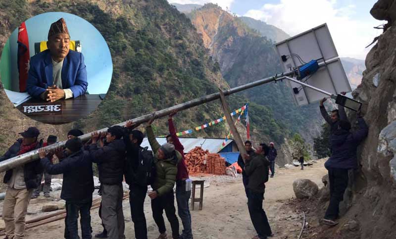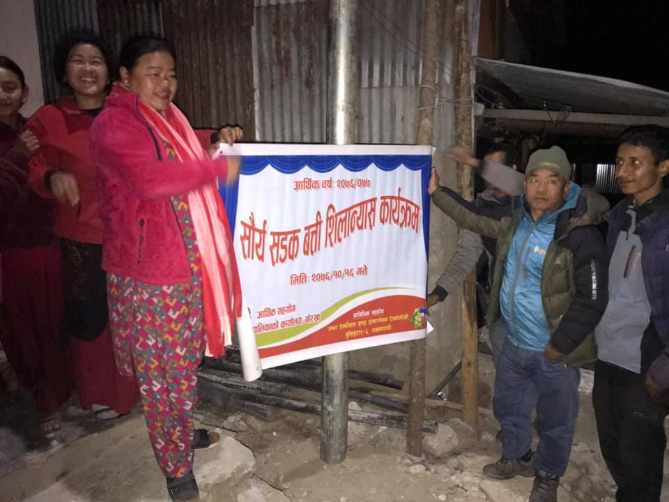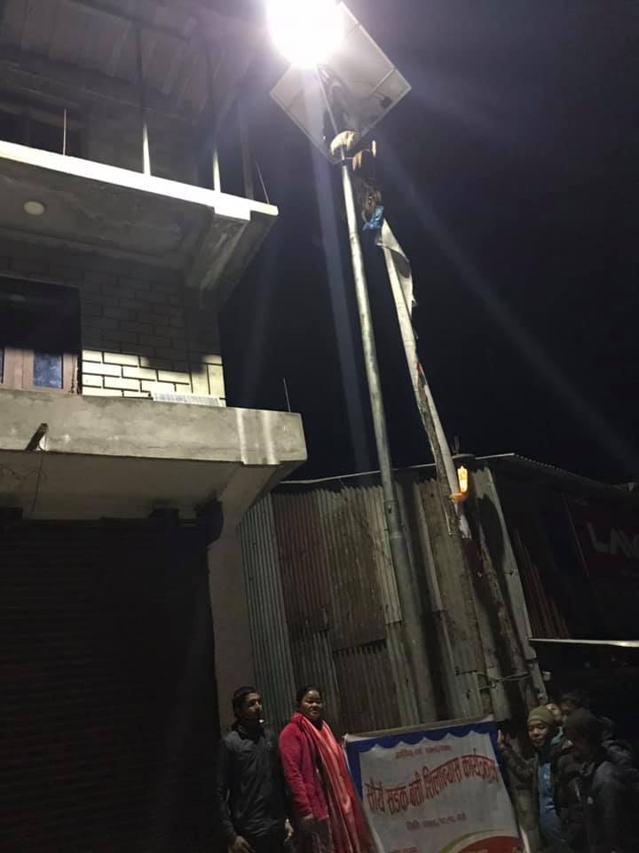 ‘आठ वर्षसम्म रातदिन बल्ने बत्ती जडान गरिएको छ’, अध्यक्ष गुरुङले भने, ‘रम्बा टेक्निकल इन्टरनेशनल टेक्नोलोजीमार्फत जोडिएको सौर्य सडक बत्ती एउटा जडान गर्न ९४ हजार आठ सय रुपियाँका दरले खर्च लागेको छ ।’