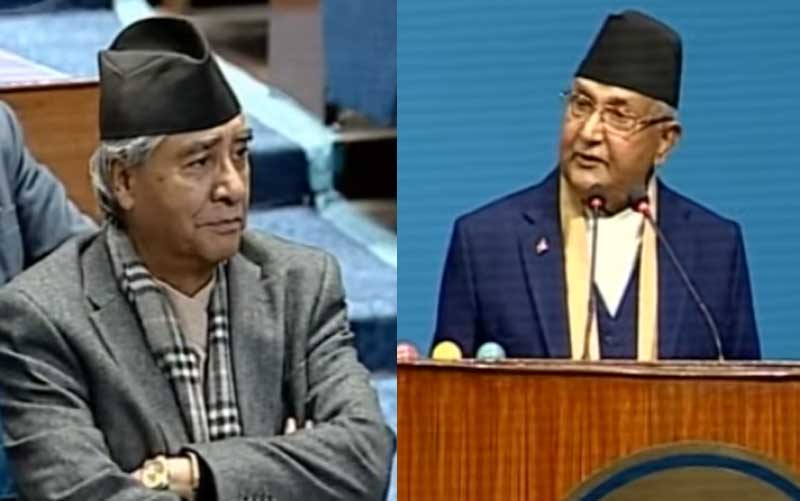काठमाडौं । झण्डै दुईतिहाइको बलियो कम्युनिस्ट सरकारका प्रधानमन्त्री खड्गप्रसाद ओलीले दुई वर्षको उपलब्धिका बारेमा संसदलाई जानकारी गराउने क्रममा प्रमुख विपक्षी दल नेपाली कांग्रेसप्रति कटाक्ष गर्दै शुरुवात गरेका छन् ।