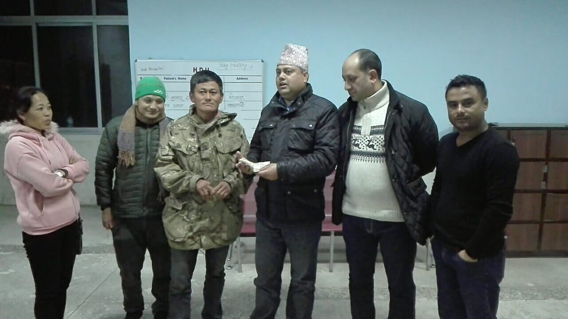 आर्थिक सहोग प्रदान गर्ने क्रममा तरुण दलका केन्द्रीय उपाध्यक्ष चापागाइँ, कांग्रेसका शुभेच्छुक एवम् शिक्षाप्रेमी विजय केसी, भक्तपुर तरुणका जिल्ला सदस्य सञ्जोग थापा, बिरामीका आफन्त गुणराज राईलगायतको सहभागिता रहेको थियो ।