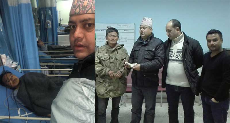 आर्थिक सहोग प्रदान गर्ने क्रममा तरुण दलका केन्द्रीय उपाध्यक्ष चापागाइँ, कांग्रेसका शुभेच्छुक एवम् शिक्षाप्रेमी विजय केसी, भक्तपुर तरुणका जिल्ला सदस्य सञ्जोग थापा, बिरामीका आफन्त गुणराज राईलगायतको सहभागिता रहेको थियो ।