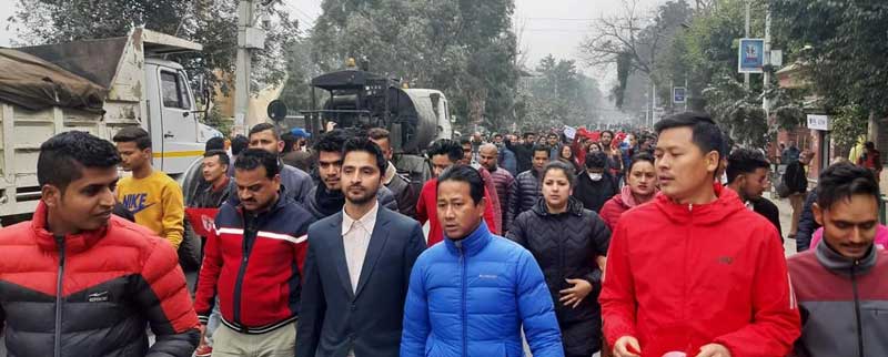 नेविसंघकाे माग र नाराले बालुवाटारभित्र खैलाबैला