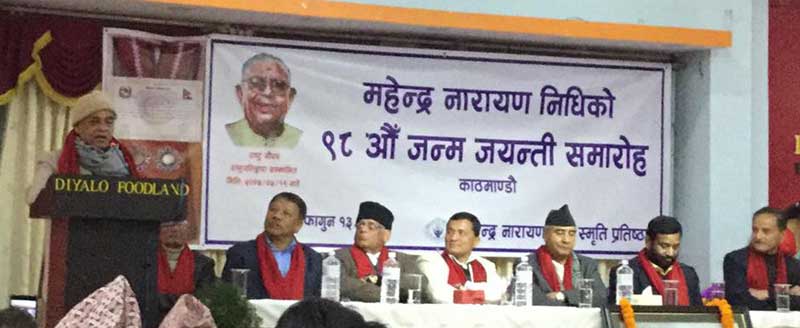 उनले मुलुक चुनौतीपूर्ण अवस्थामा रहेका बेला महेन्द्रनारायण निधिले शुरु गर्नु भएको अहिंसाको बाटो बढेमा निधिप्रति सच्चा श्रद्धाञ्जलि हुने बताए ।